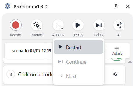 - Test partial scenario execution during development