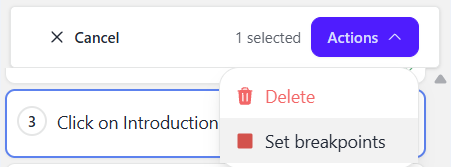 Place a breakpoint on any step where you want execution to pause. You can set multiple breakpoints throughout your scenario to control execution flow precisely.