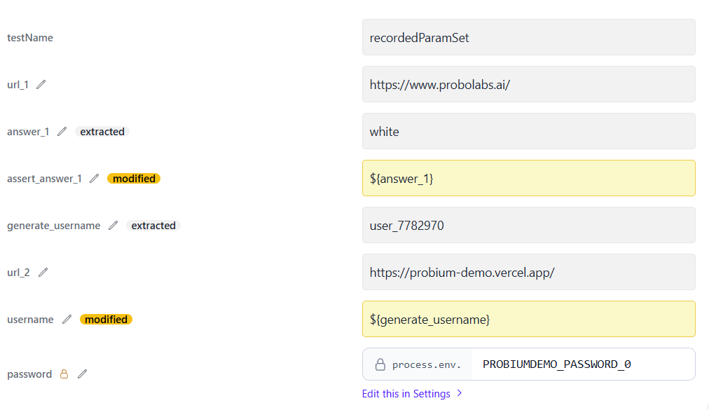 Example: If parameter user_email has the value "test@example.com", you can set another parameter's value to reference ${user_email} so it always uses the same email.