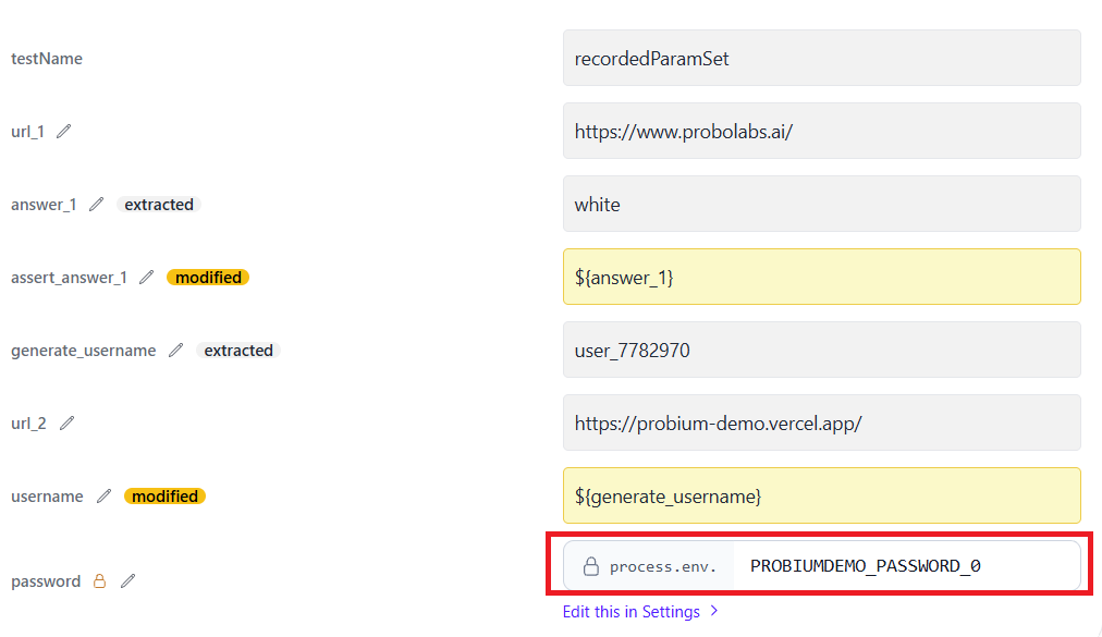 When you record scenarios involving sensitive information, these values are automatically marked as secret: